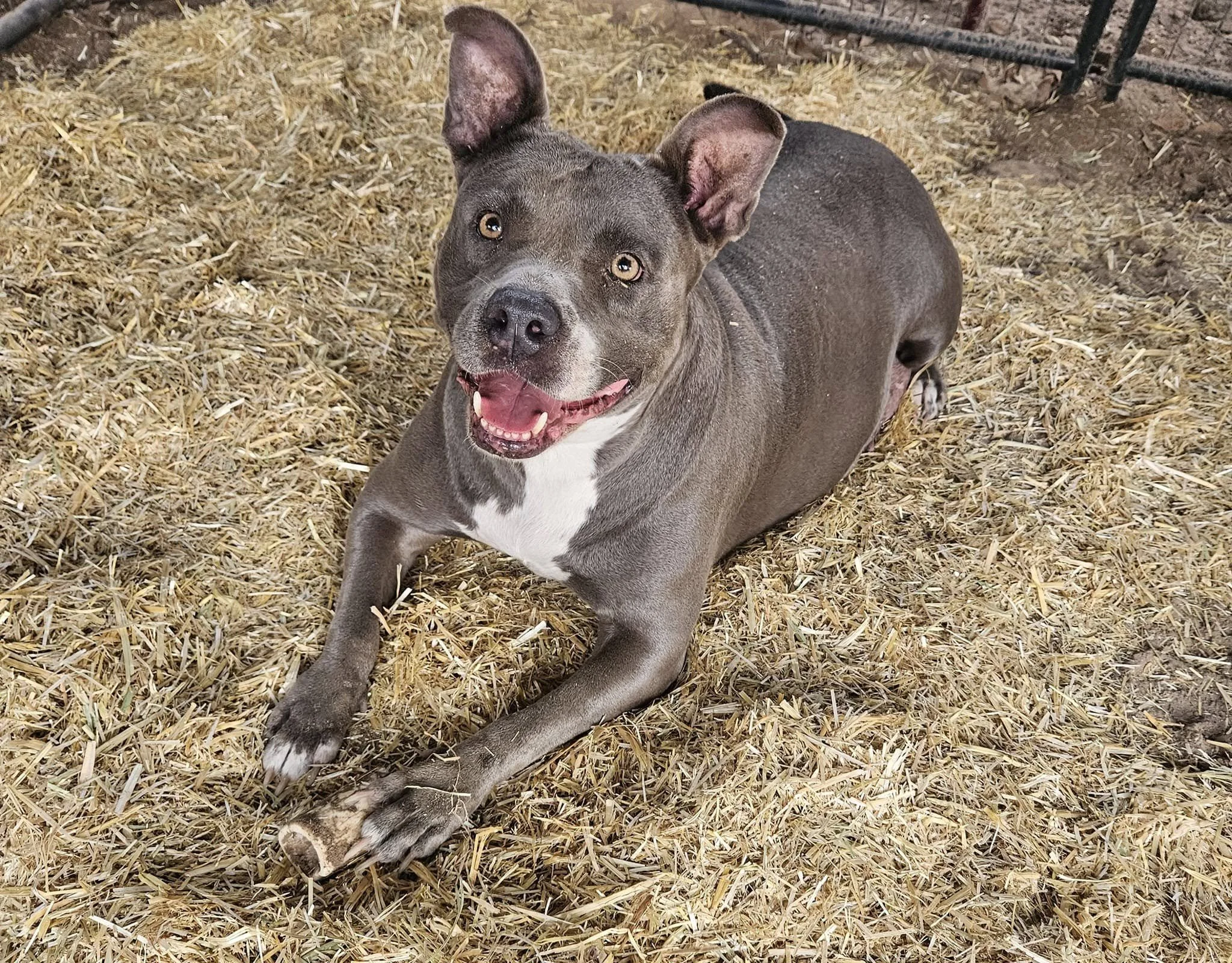 I researched Laci and what her breed might be, and Cimarron Uruguayo is what I found, Laci is sable brindle and a beautiful girl, Laci does not like men and is very protective of me as she sees me as her caregiver. Approx age is 2.5 years as of 2/10/25 per Dr. Cronin. She weighs 62 pounds